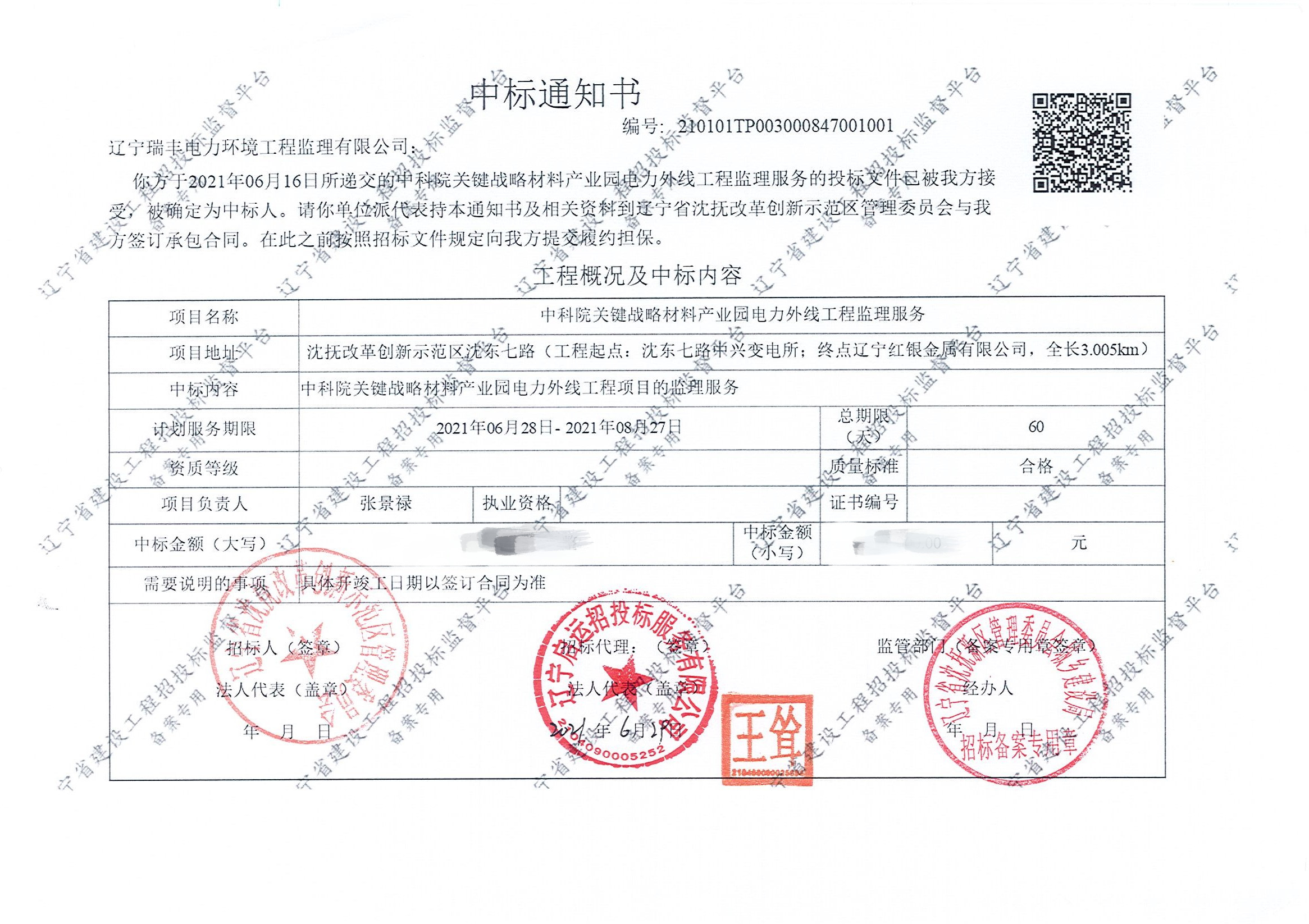 中標喜訊-中科院關(guān)鍵戰(zhàn)略材料產(chǎn)業(yè)園電力外線工程監(jiān)理服務(wù)