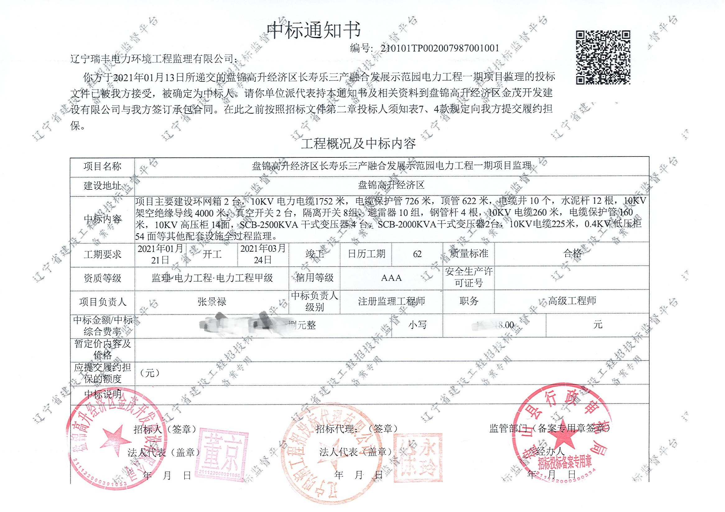 中標(biāo)喜訊-盤錦高升經(jīng)濟(jì)區(qū)長壽樂三產(chǎn)融合發(fā)展示范園電力工程一期項(xiàng)目監(jiān)理