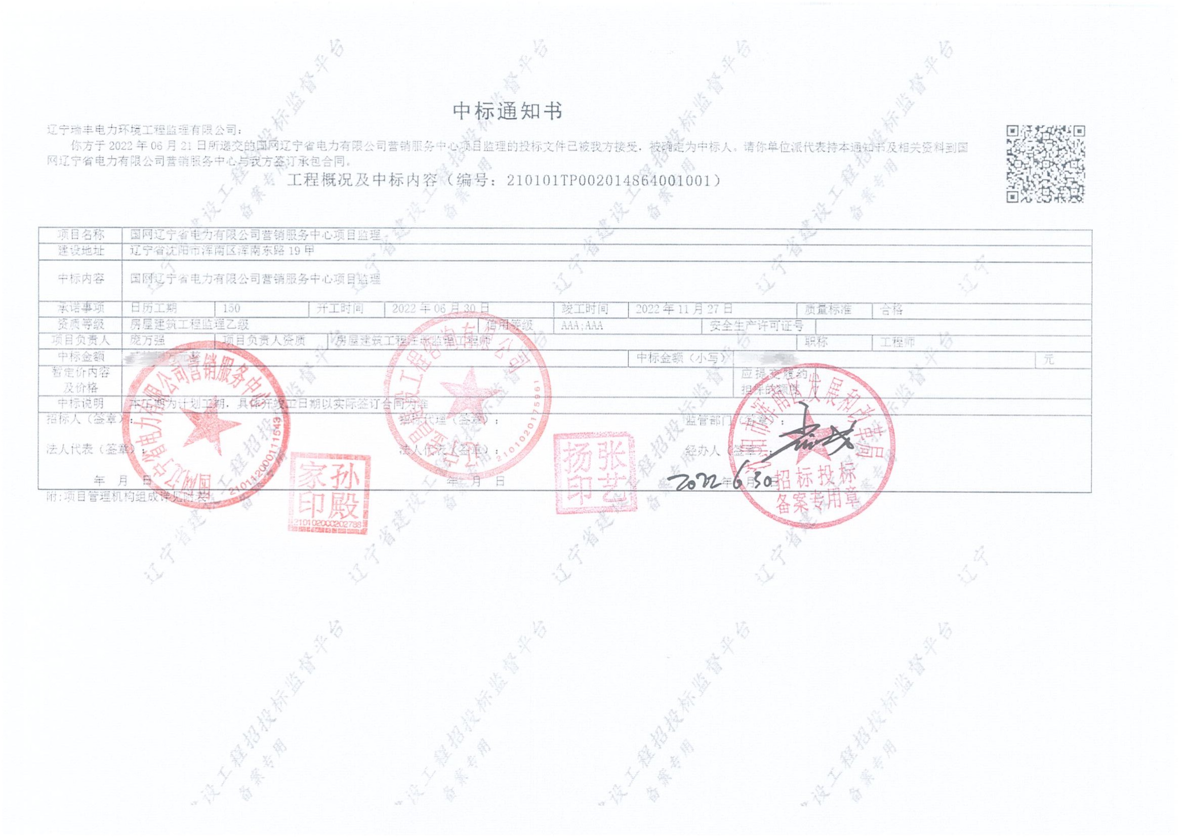 中標(biāo)喜訊-國網(wǎng)遼寧省電力有限公司營銷服務(wù)中心項(xiàng)目監(jiān)理
