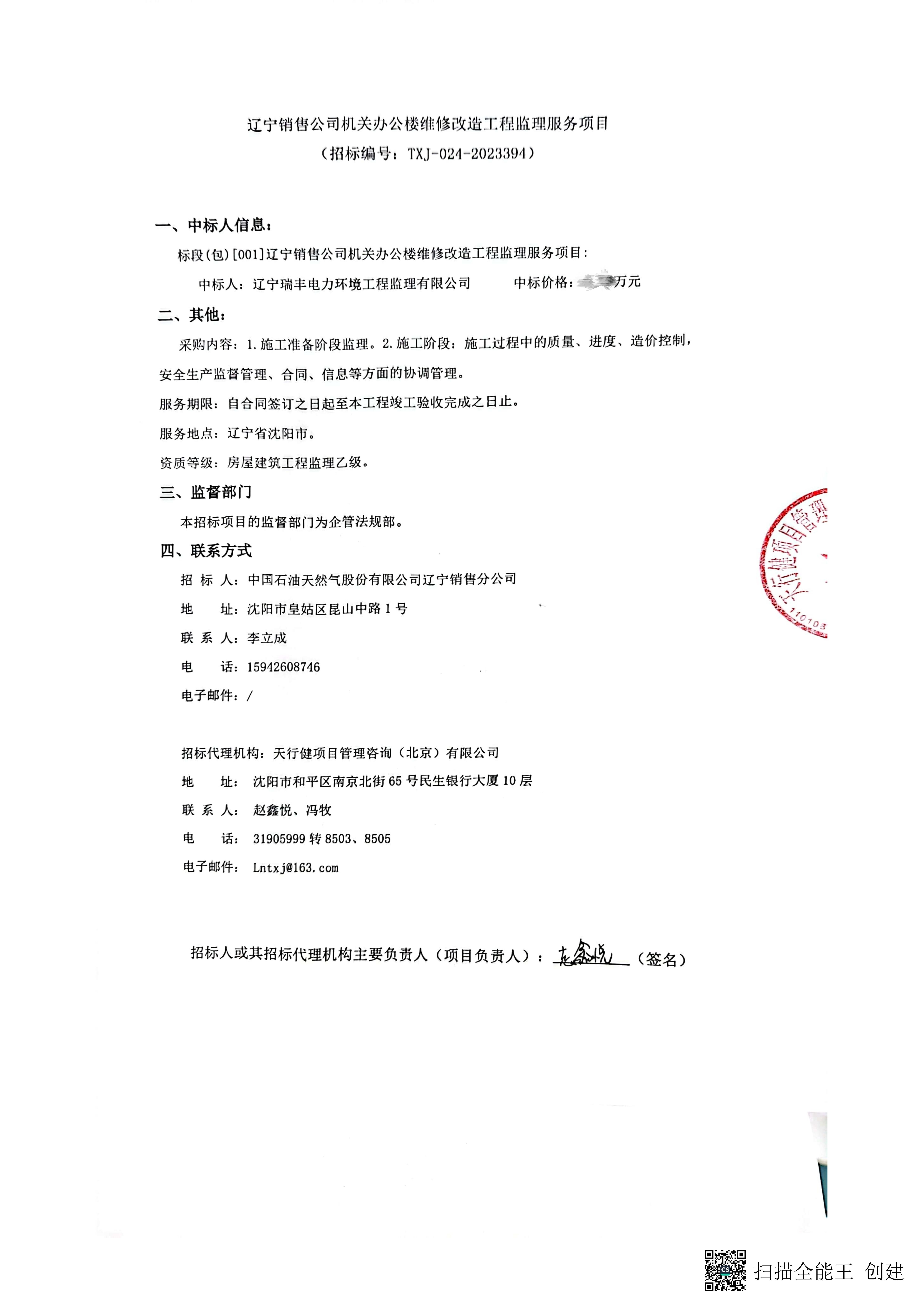 中標喜訊-遼寧銷售公司機關辦公樓維修改造工程監(jiān)理服務