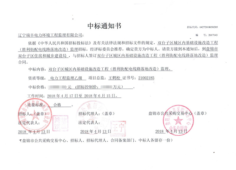 中標喜訊-雙臺子區(qū)城區(qū)內基礎設施改造工程(勝利街配電線路落地改造)監(jiān)理