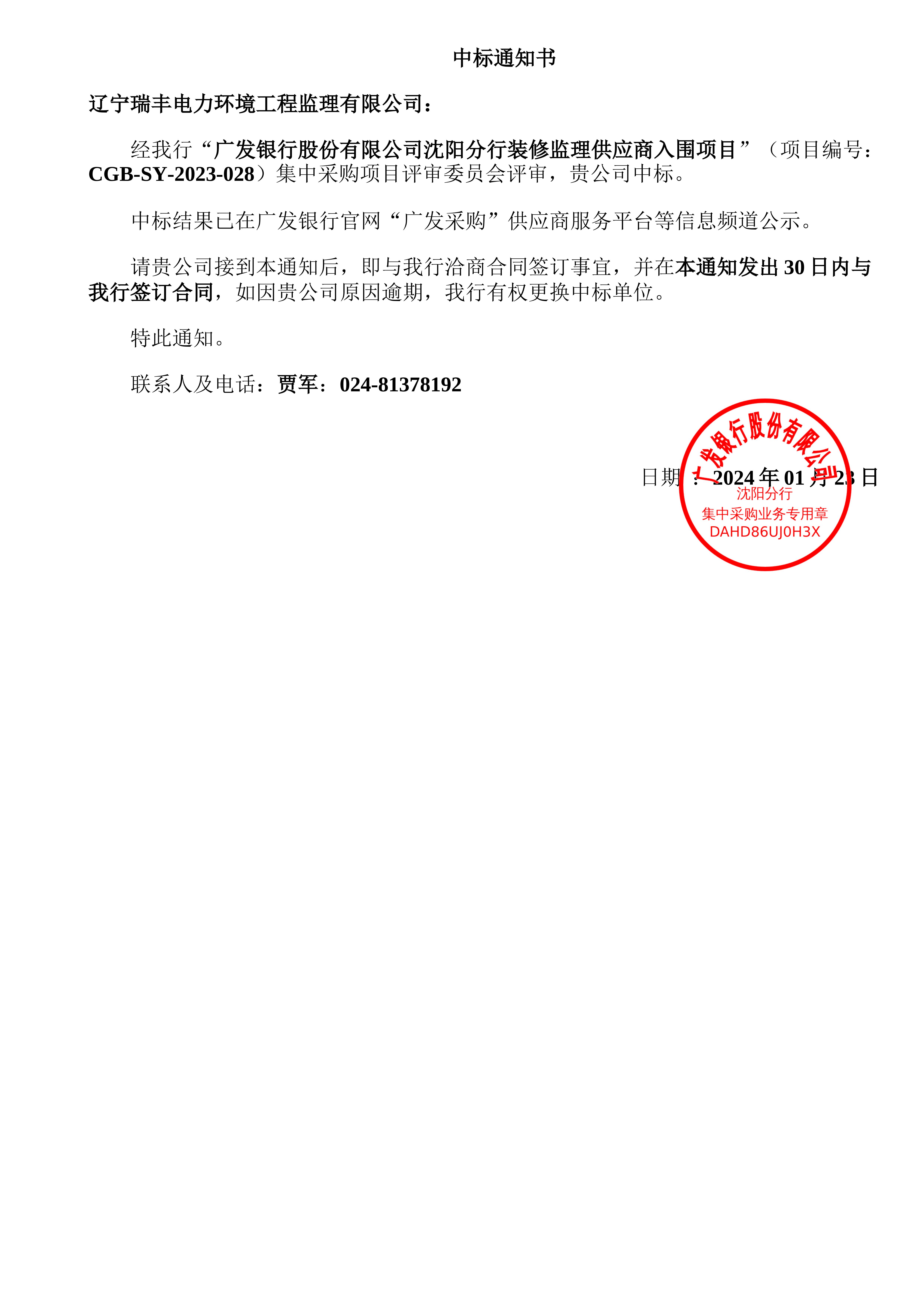 中標喜訊-廣發(fā)銀行股份有限公司沈陽分行裝修監(jiān)理供應商入圍項目